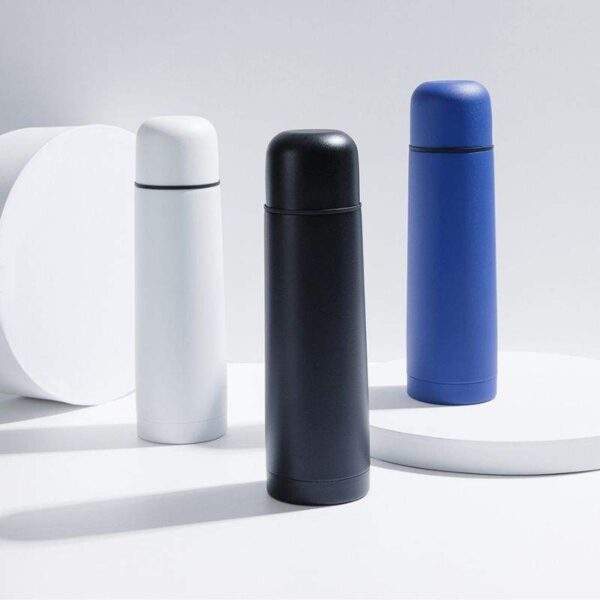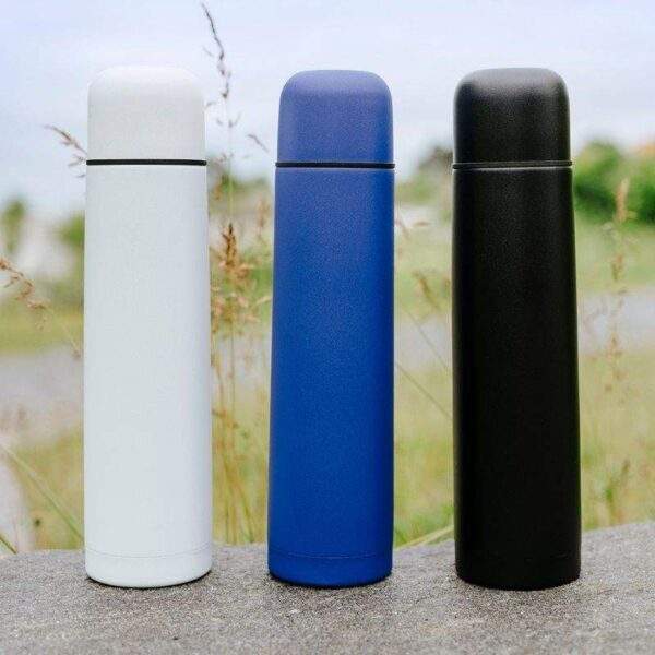 - Dobbeltisolert, solid og pulverlakkert ståltermos i to størrelser